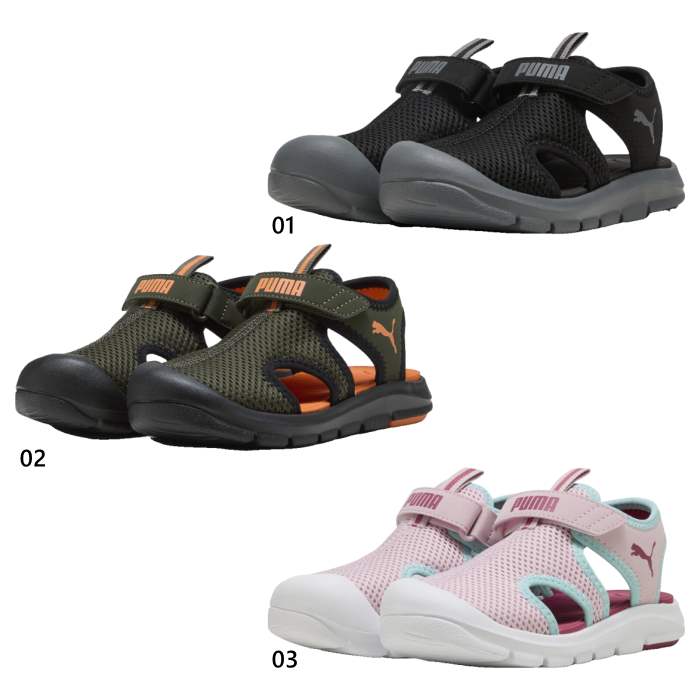 プーマ ジュニア キッズ ファン レーサー メッシュ サンダル 17-21cm ブラック 黒 ピンク・・・