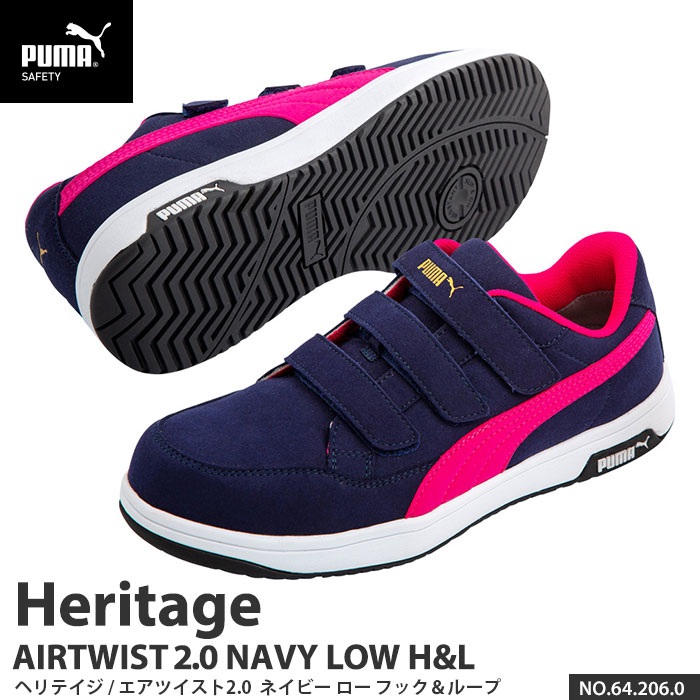 安全靴 エアツイスト2.0 ローカット 26.5cm H&L 面ファスナー ネイビー PUMA(プー・・・