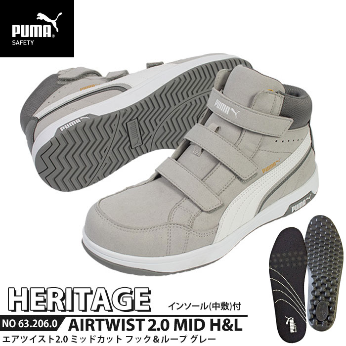 安全靴 エアツイスト2.0 ミッドカット 26.0cm H&L 面ファスナー グレー PUMA(プー・・・
