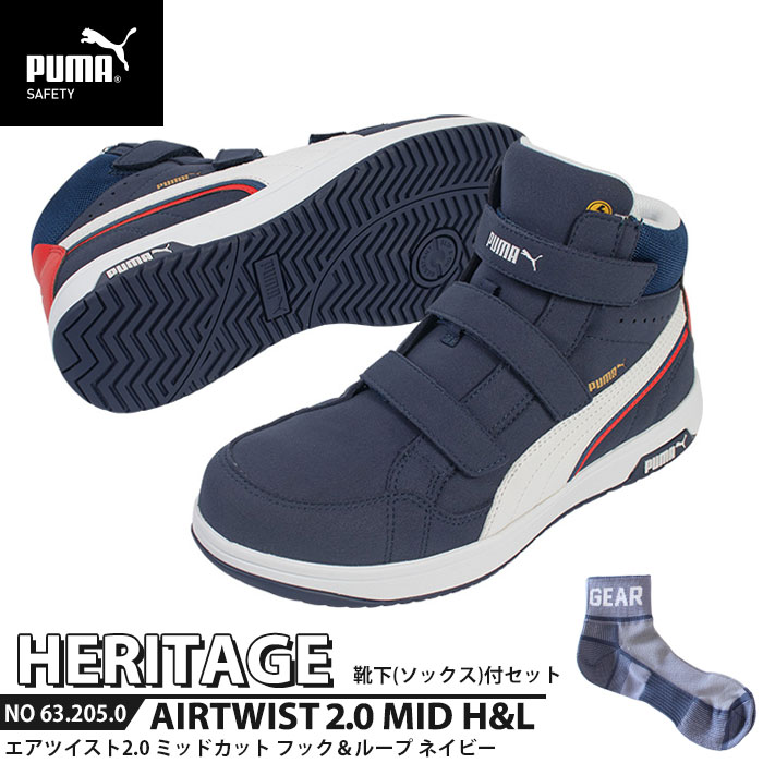 安全靴 エアツイスト2.0 ミッドカット 27.0cm H&L 面ファスナー ネイビー 靴下付 PU・・・