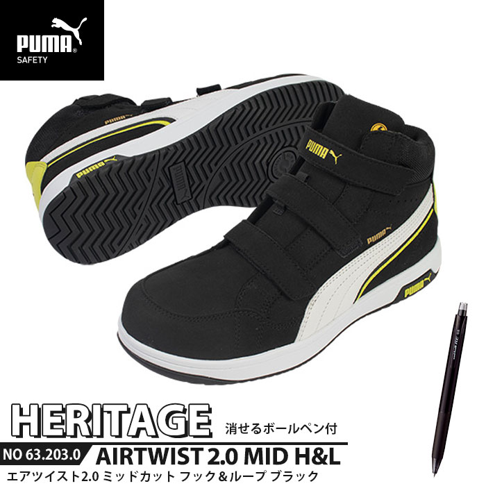 安全靴 エアツイスト2.0 ミッドカット 27.0cm H&L 面ファスナー ブラック 消せるボール・・・