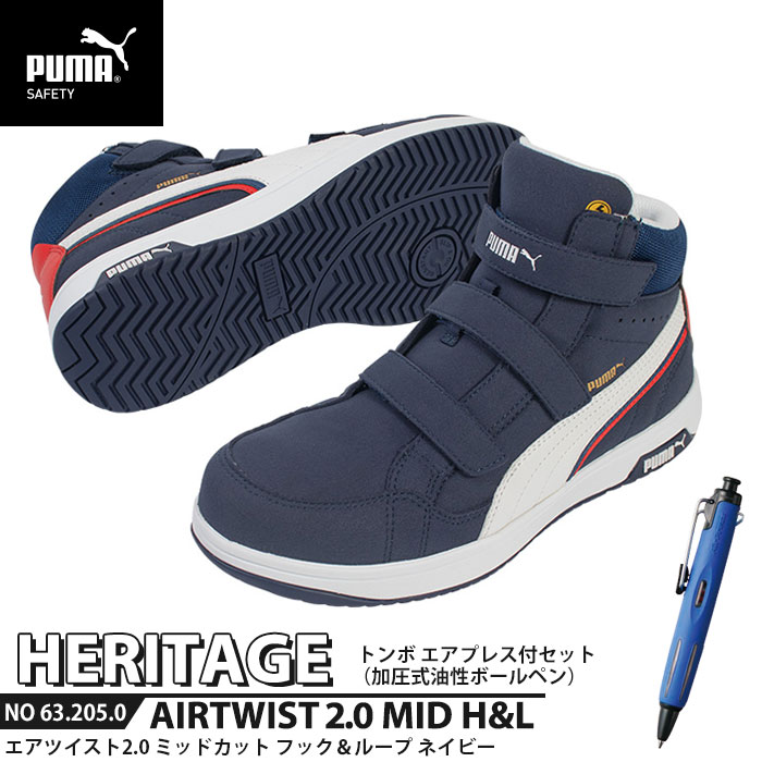 安全靴 エアツイスト2.0 ミッドカット 27.0cm H&L 面ファスナー ネイビー エアプレス ・・・