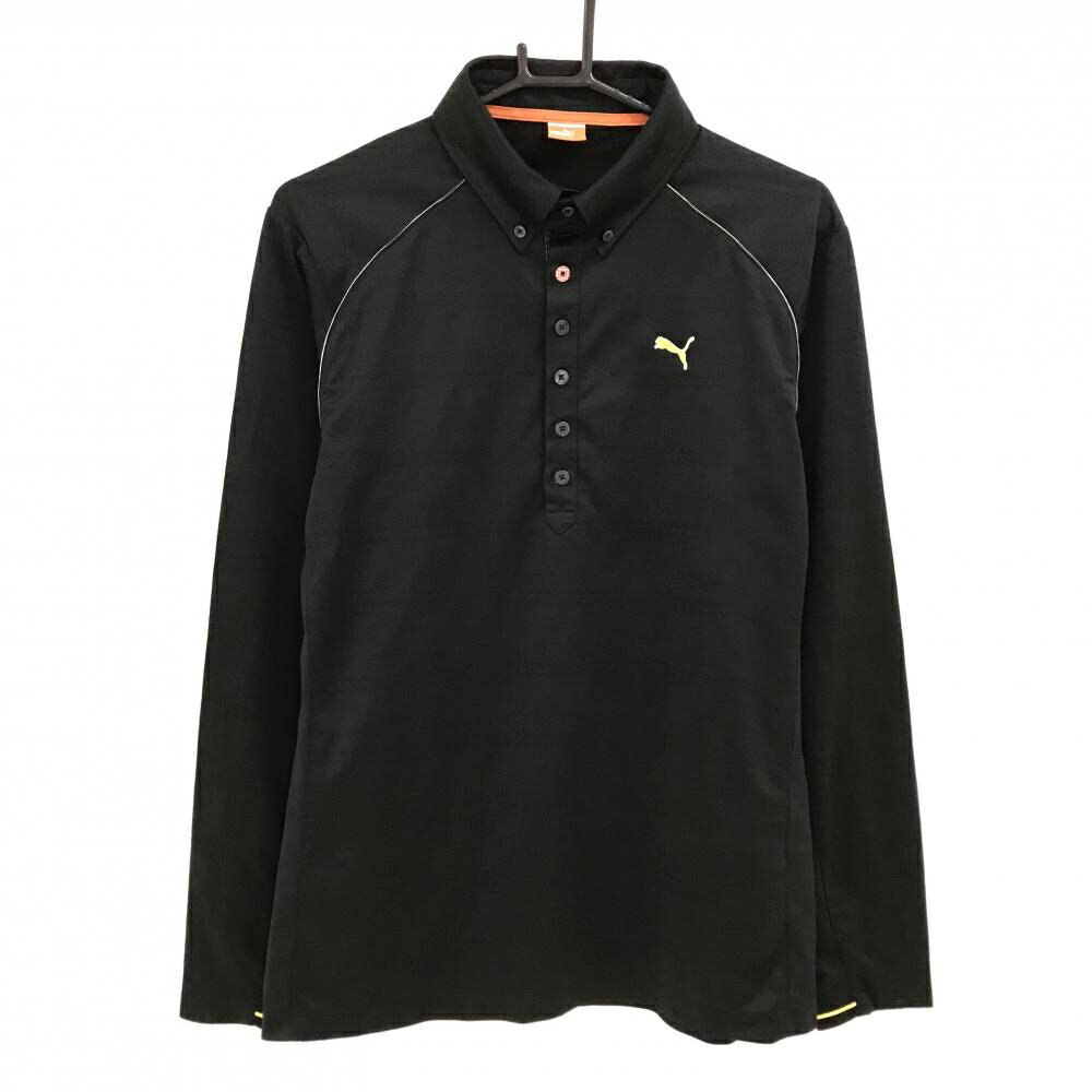 【超美品】プーマ 長袖ポロシャツ 黒×イエローグリーン 総柄 千鳥格子 袖口一部ゴム ボタンダウン ・・・