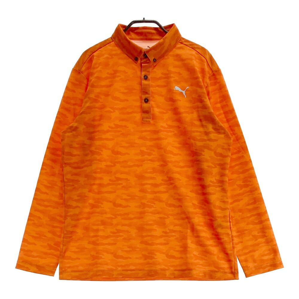 PUMA GOLF プーマゴルフ ボタンダウン 長袖ポロシャツ カモフラ柄 オレンジ系 L 【中古】・・・