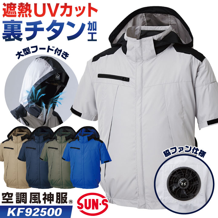 サンエス 空調風神服 サイドファン 半袖 ブルゾン ジャケット ジャンパー 春夏 空調作業服 空調ウ・・・