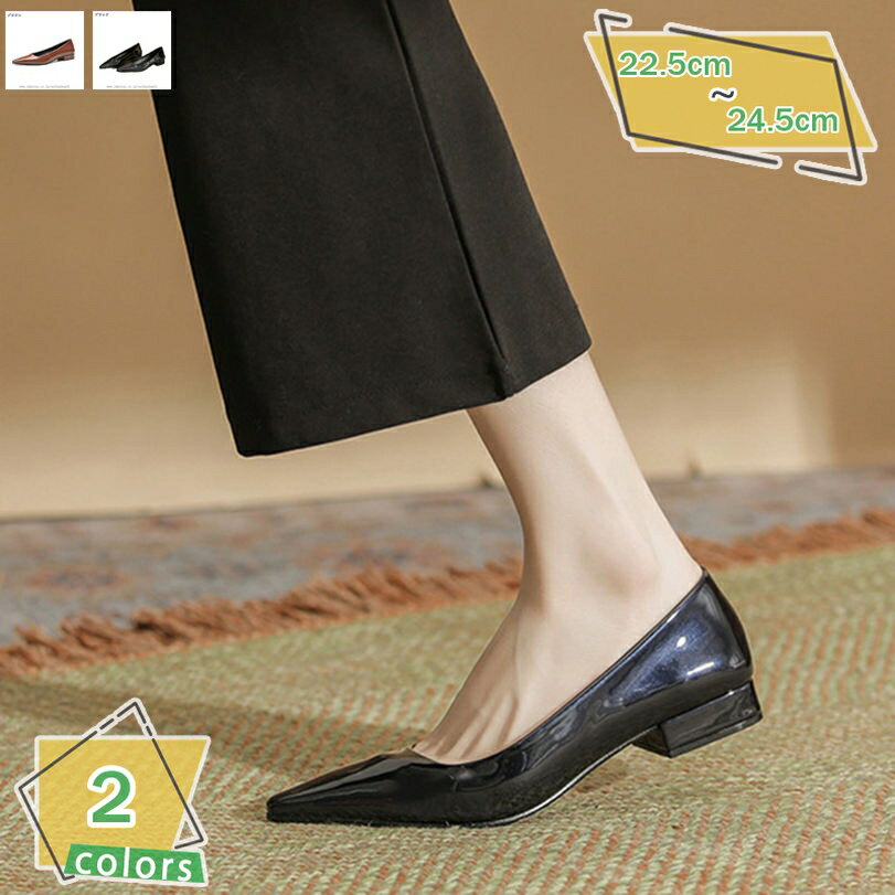 300円OFFクーポン パンプス ポインテッドトゥ 痛くない ぺたんこ エナメル ローヒール フォー・・・