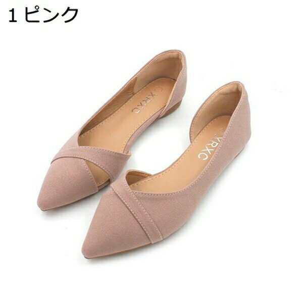 カジュアル ポインテッドトゥ フラットシューズ パール フラット プレーンパンプス 靴 バレエシュー・・・