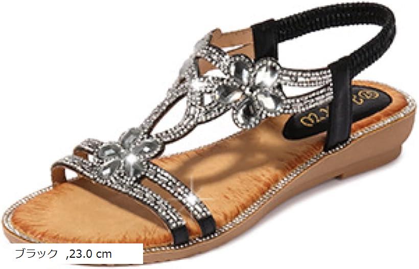 ビジュー サンダル レディース フラットヒール きらきら ラインストーン ぺったんこ ローヒール シ・・・