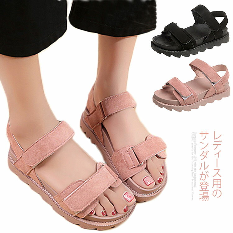 サンダル レディース ビーサン マジックテープ ぺったんこ 靴 滑り止め加工 シューズ 女性用 くつ・・・