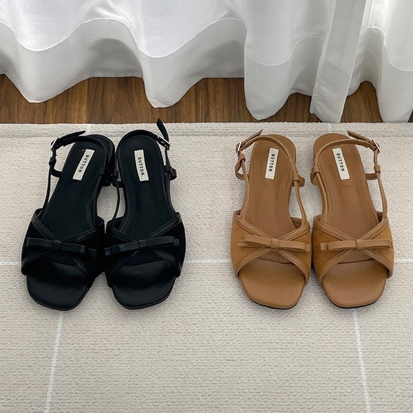 サンダル ストラップ りぼん リボン フラット レディース ぺたんこ ペタンコ 黒 茶 ブラック ブ・・・