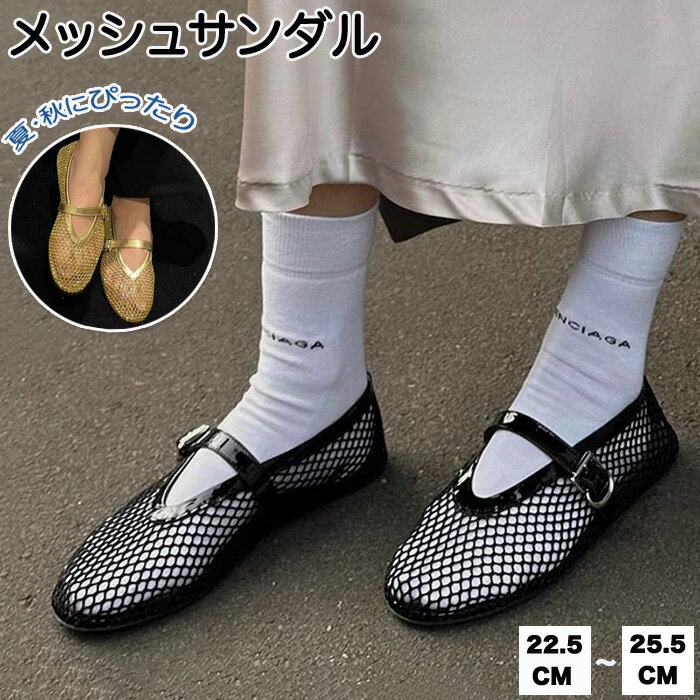サンダル メッシュ パンプス フラット ペタンコ シューズ パーティ メッシュ素材 夏コーデ ビーチ・・・