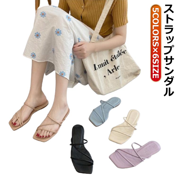 サンダル レディース ストラップ 細ストラップサンダル フラット オープントゥ ぺたんこ 美脚 無地・・・
