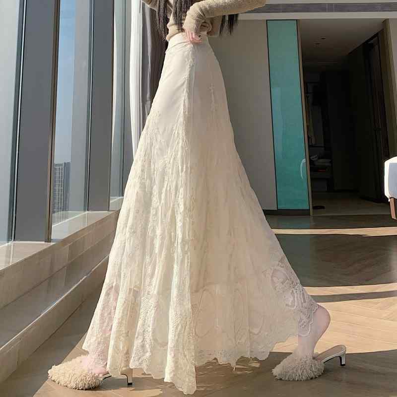 ロングスカート レディース 秋冬 レース チュール フレンチテイスト フェミニン 上品 エレガント ・・・