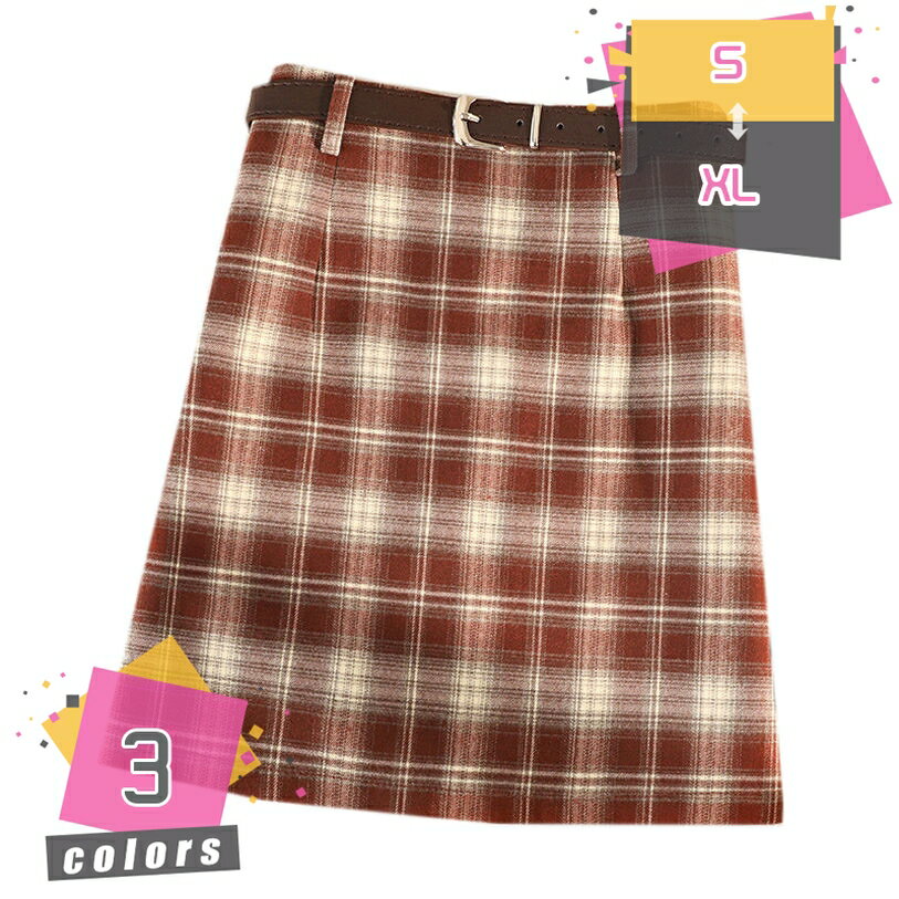 500円OFFクーポン チェックスカート 無地 ハイウェスト 厚手 レディース スカート カジュアル・・・