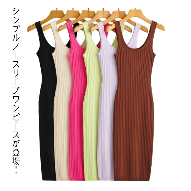 ロングワンピース ワンピース 送料無料 ニットワンピース シンプル キャミソールワンピース 無地 ノ・・・