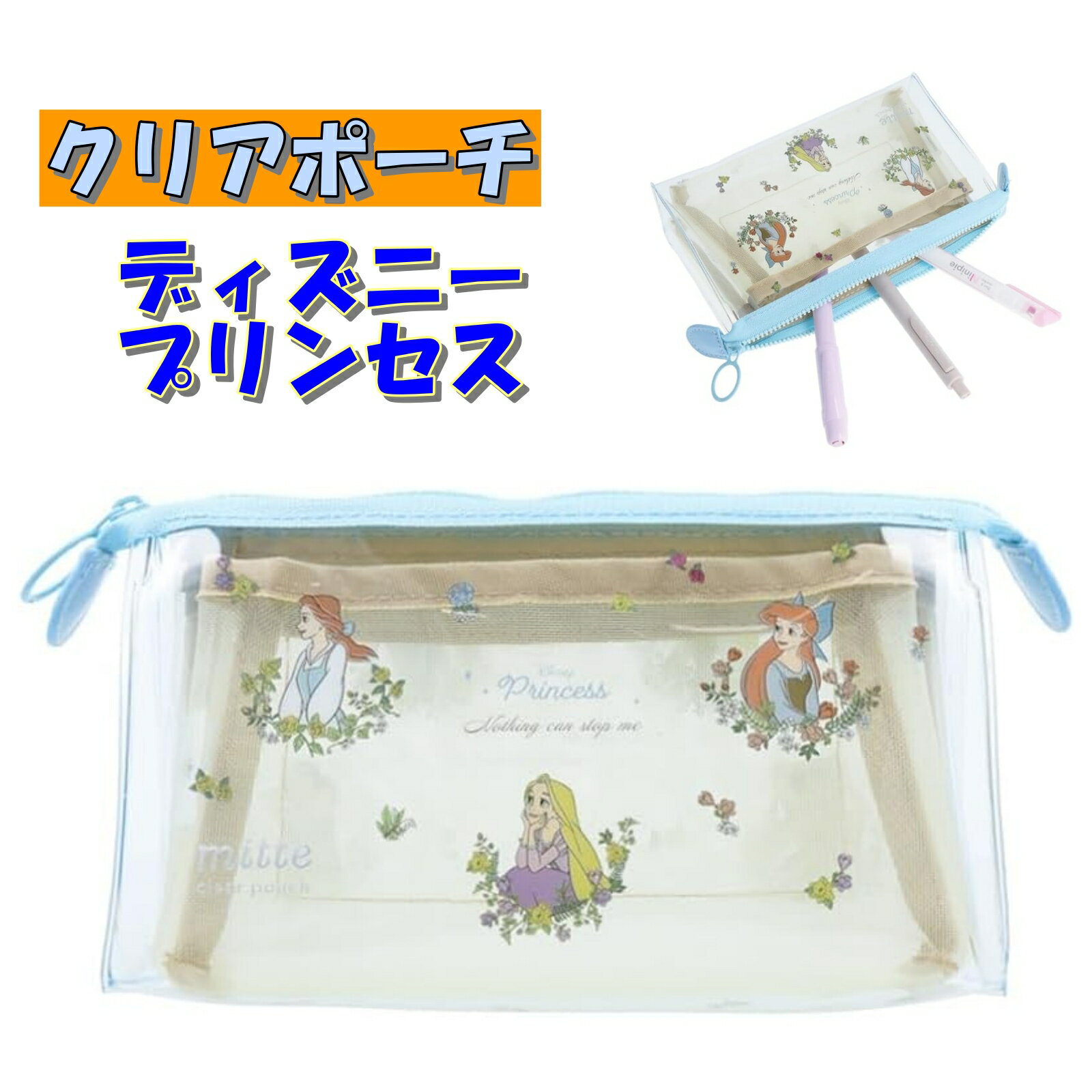 ポーチ ペンケース キャラクター 小物 ディズニー ディズニープリンセス クリアポーチ サンスター文・・・