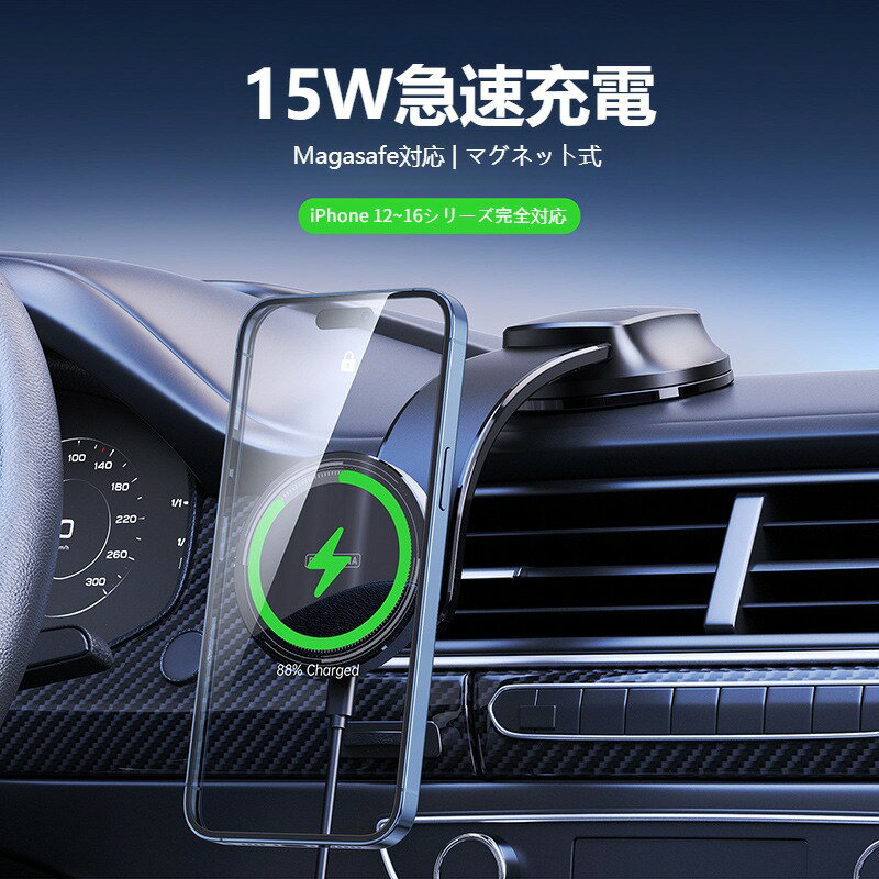 15W高速充電 車載ホルダー マグネット ワイヤレス充電 スマホホルダー MagSafe/Qi両対応・・・