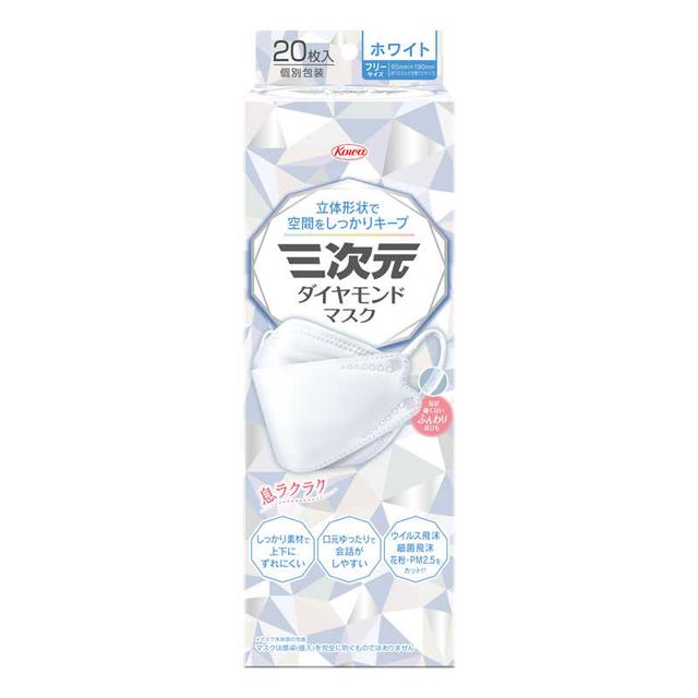 興和 三次元ダイヤモンドマスク フリーサイズ ホワイト 個包装 20枚入り 20枚▼返品・キャンセル・・・