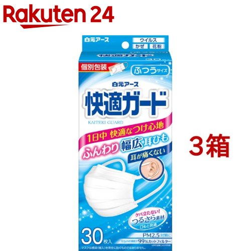 快適ガード マスク ふつうサイズ 個別包装(30枚入*3箱セット)【快適ガード】[マスク 不織布 個・・・