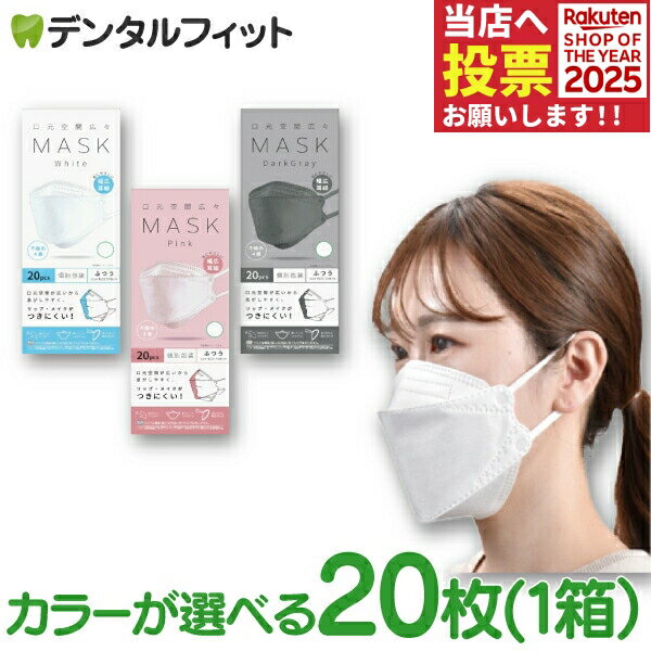 口元空間広々マスク 20枚入(ホワイト、ピンク、ダークグレー) 個包装 【ふつうサイズ 80×205・・・