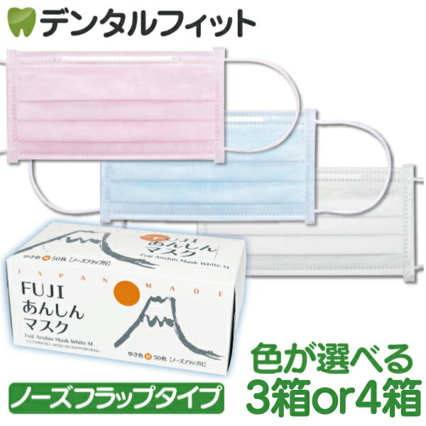 日本製 FUJIあんしんマスク Mサイズ ノーズフラップ付150枚(50枚×3箱) or 200枚(・・・