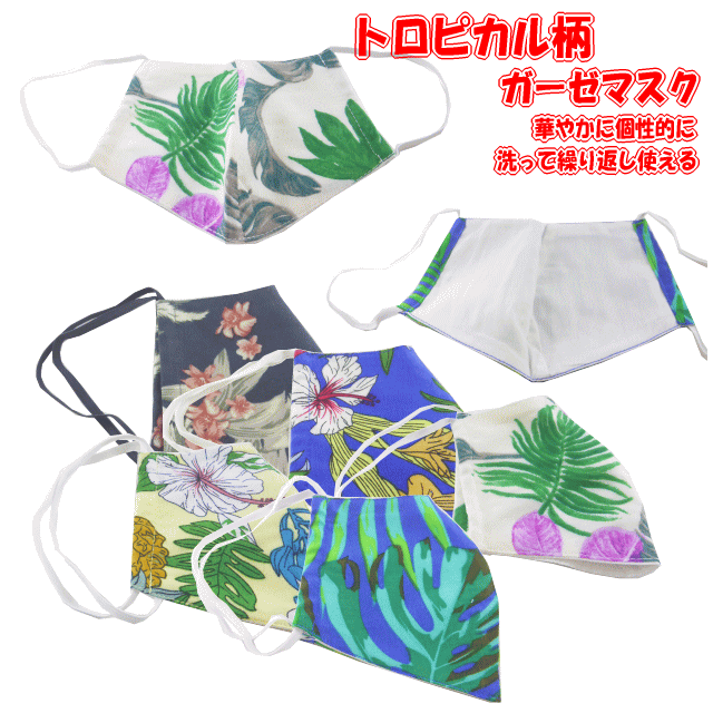 洗って繰り返し使えるガーゼマスク華やかで鮮やかなトロピカル柄 ハワイアン柄ゴムタイプで使いやすいオシ・・・