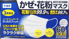 不織布かぜ・花粉マスク(使い捨てタイプ) 60枚入
