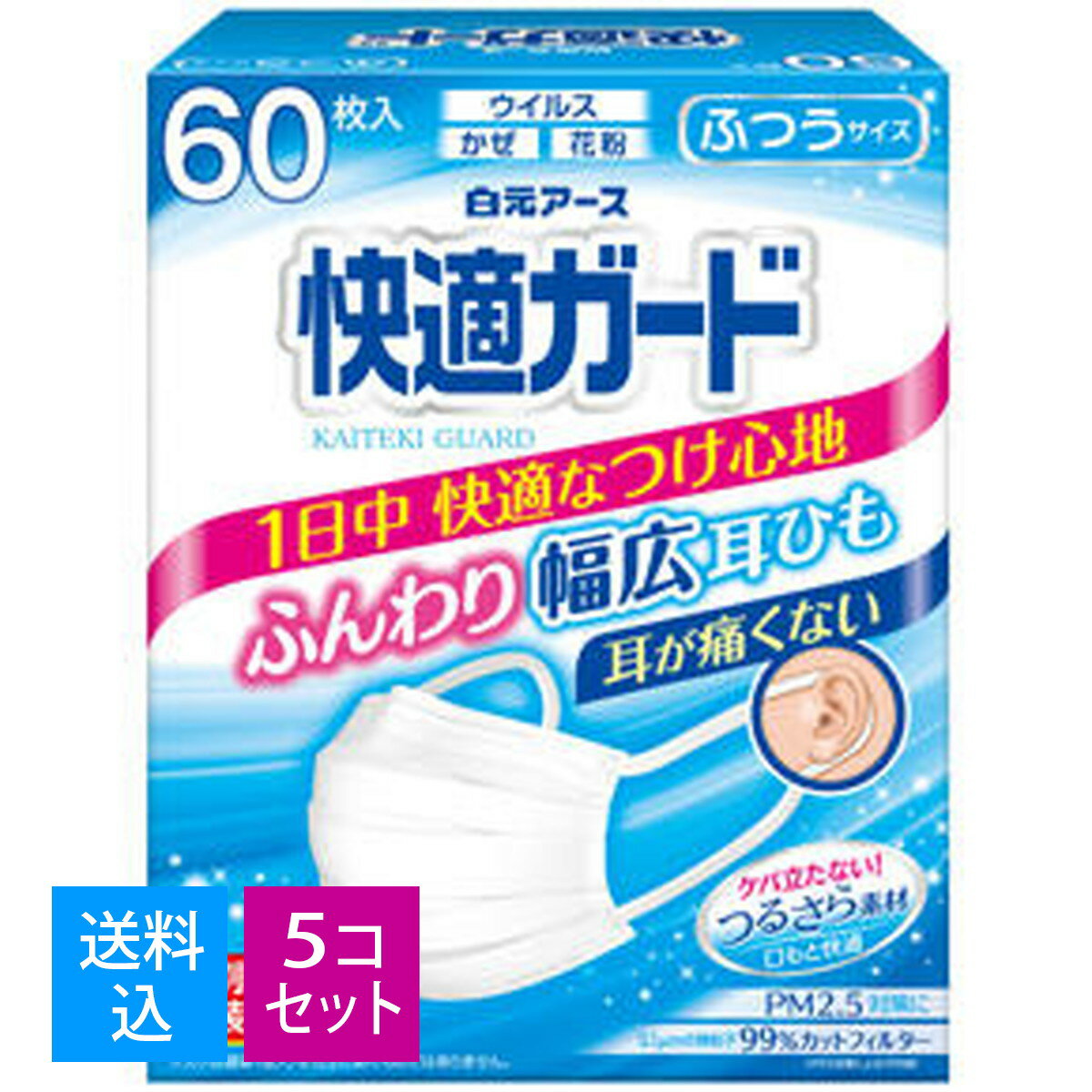 【送料込・まとめ買い60枚×5個セット】【数量限定】白元アース 快適ガード マスク 60枚入 ふつう・・・