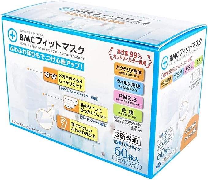 【60枚入×3個セット 送料込】ビー・エム・シー BMC フィット マスク 60枚入 レギュラー