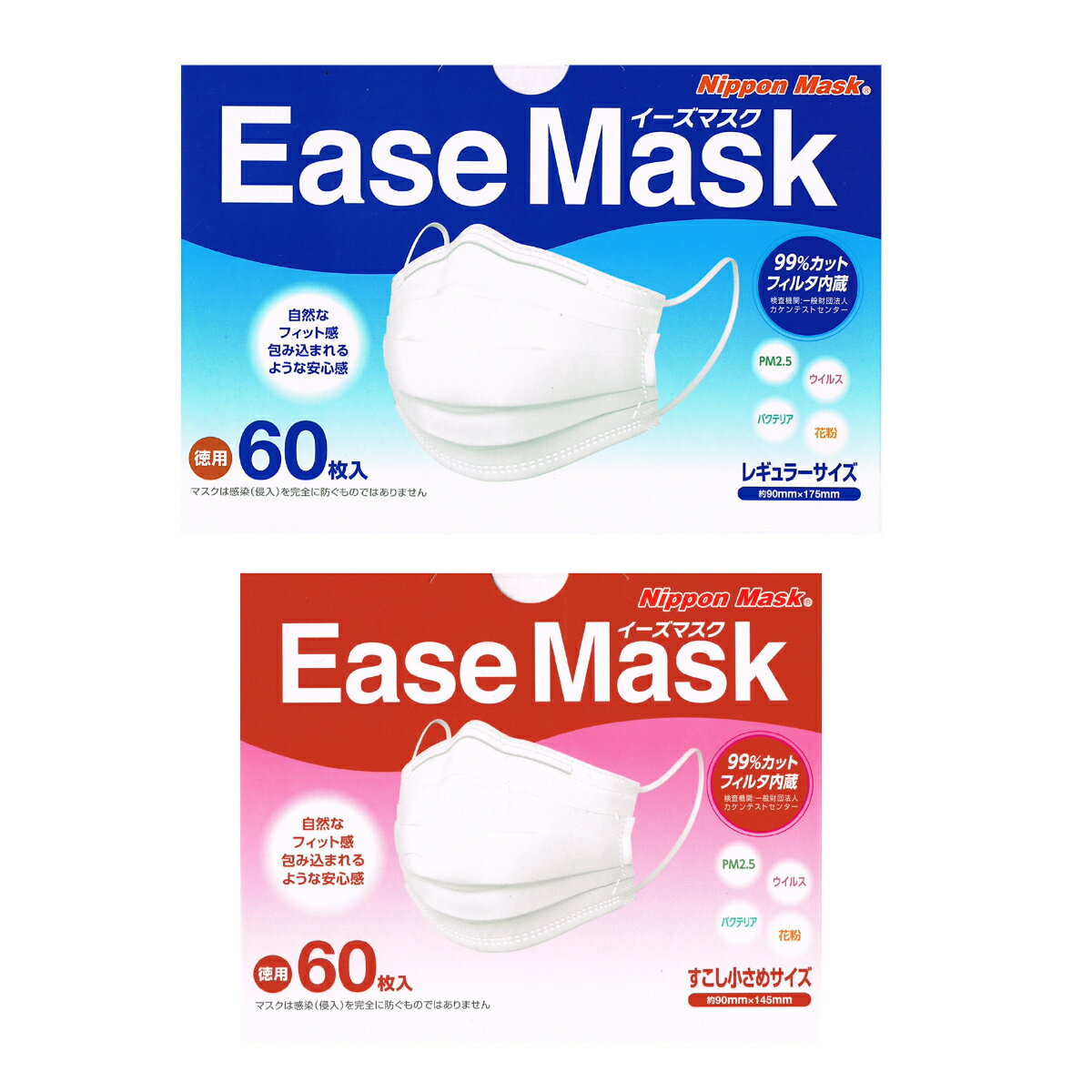 イーズマスク Ease Mask 60枚入り 不織布マスク 大人用 レギュラー すこし小さめ ウィル・・・