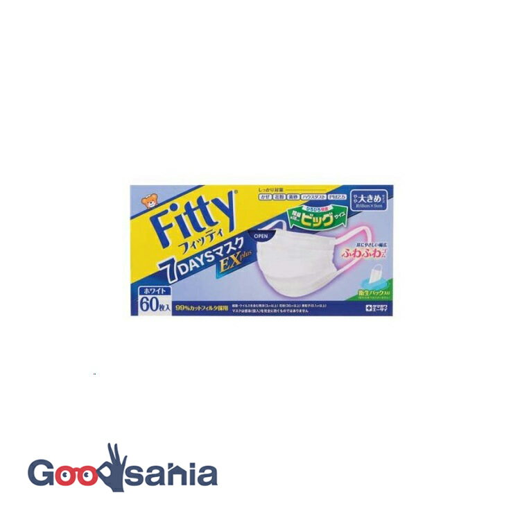 フィッティ 7DAYSマスク EXプラス 大きめ ホワイト 60枚 ( マスク プリーツ )