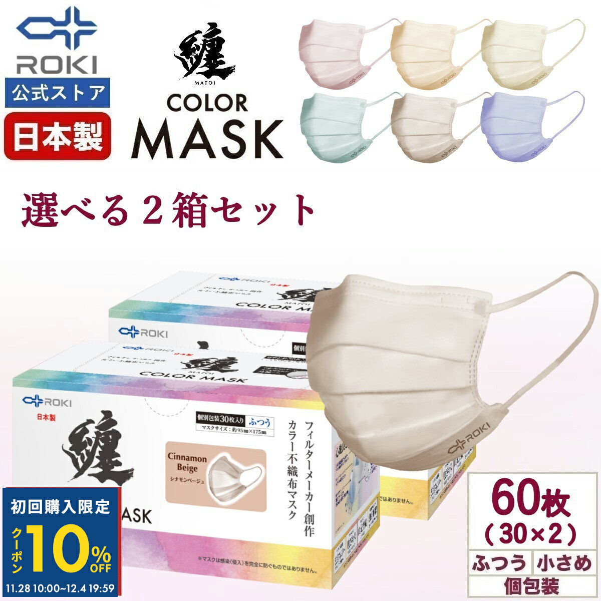 【初回限定10%OFFクーポン 12/4 20時まで】不織布 マスク カラー 日本製 選べる6色 3・・・