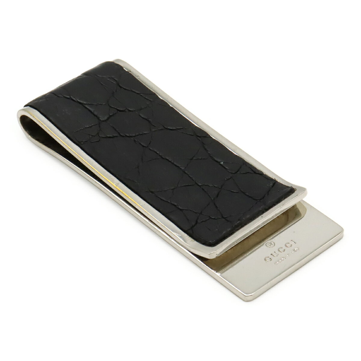 GUCCI グッチ マネークリップ ビルクリップ 札ばさみ クロコ型押し レザー ブラック 黒 シル・・・
