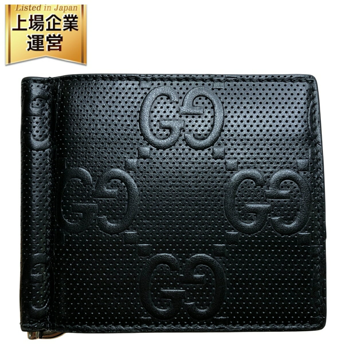 【中古】 グッチ GGエンボス 676656 マネークリップ ウォレット 二つ折り ブラック レザー・・・