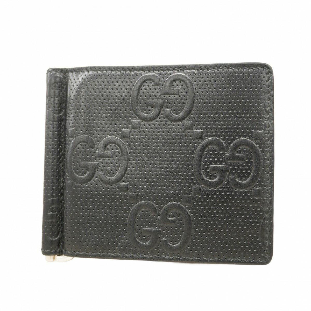【5oc2437】グッチ マネークリップ ジャンボGG 676656 レザー ブラック シルバー金具・・・