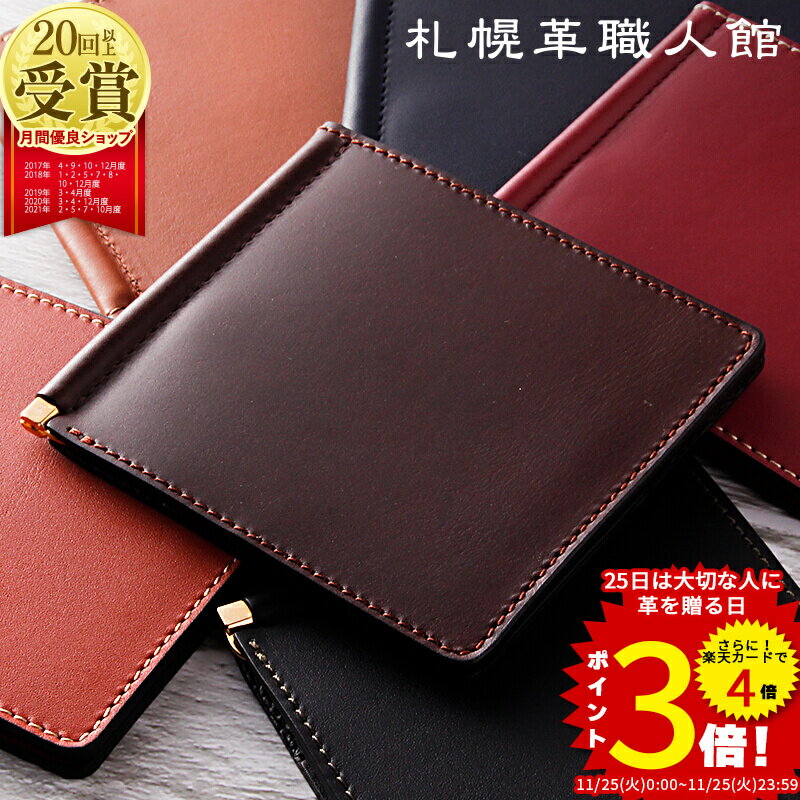 マネークリップ カード入れ付き 名入れ カード 札幌革職人館 二つ折り 財布 ミニ財布 札ばさみ 革・・・
