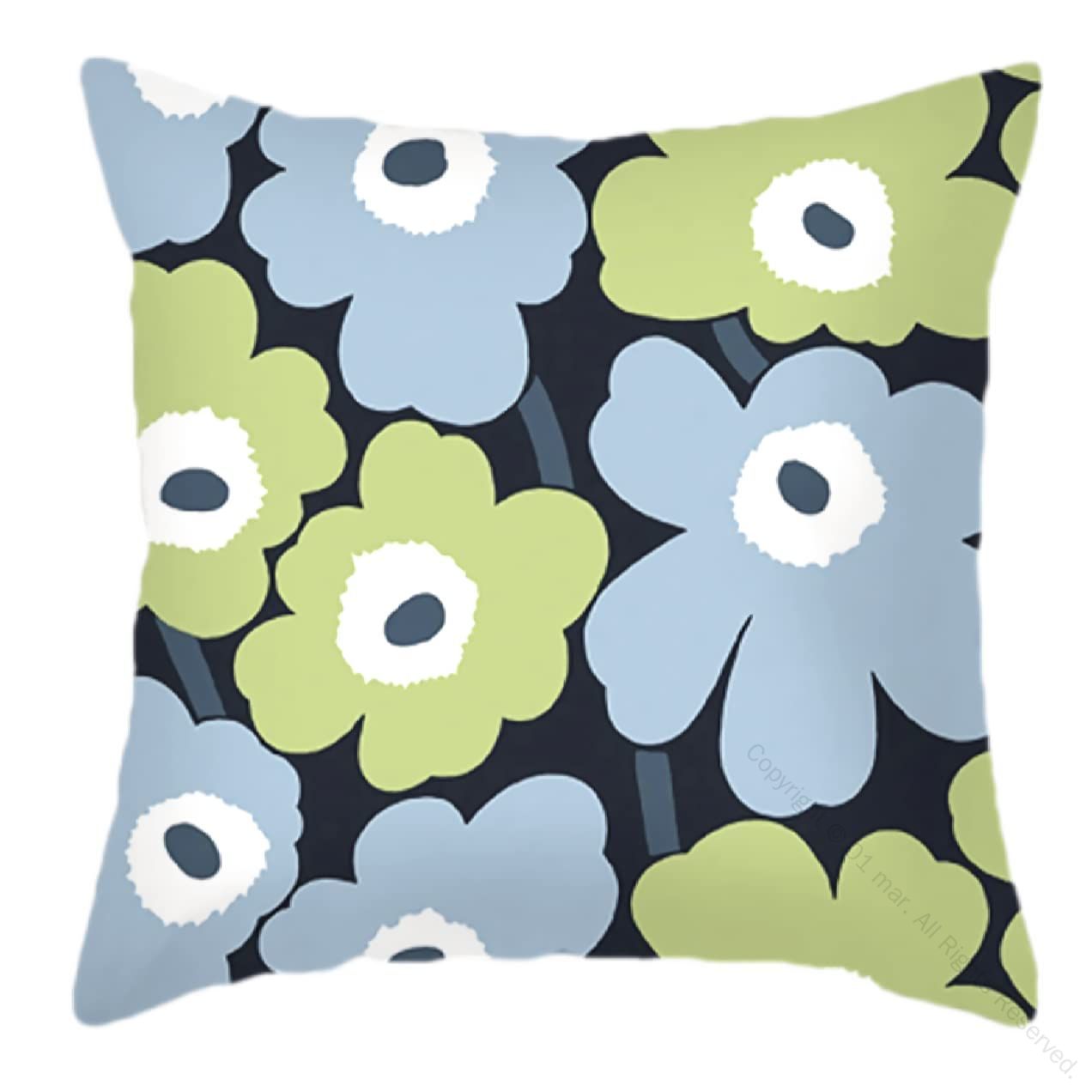 クッションカバー 北欧風 マリメッコ風デザイン ウニッコ 花柄 45cm×45cm ブルー グリーン・・・