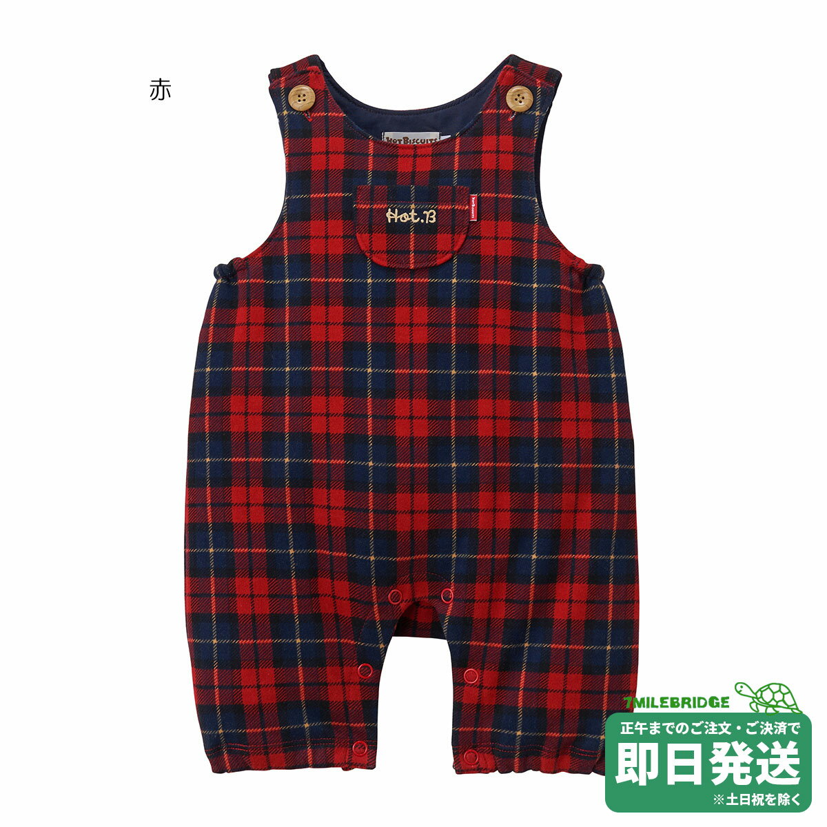 ホットビスケッツ チェック柄 やわらか ベビーオーバーオール(70cm・80cm・90cm)ミキハウ・・・