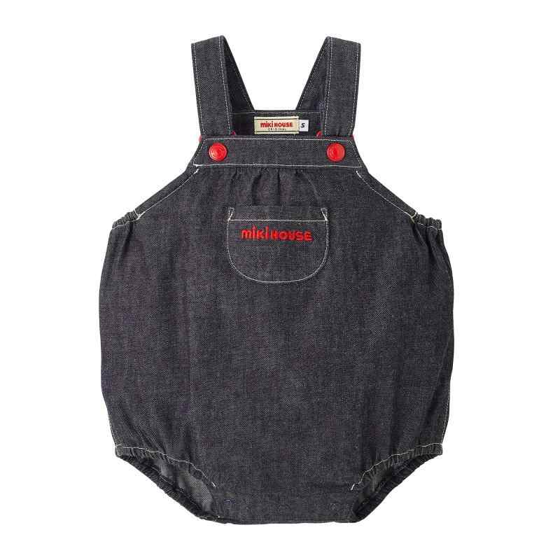 [ミキハウス] ロンパース サロペット オーバーオール ロゴ 無地 日本製 男の子 女の子 ベビー ・・・