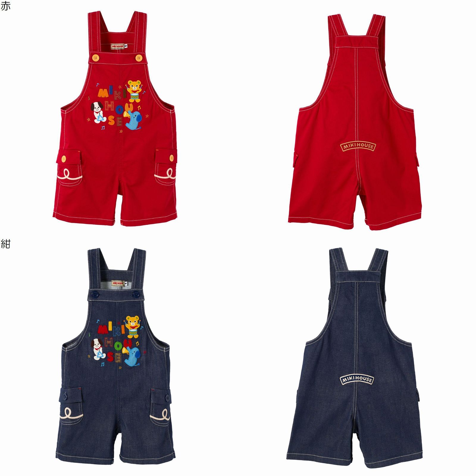 [ミキハウス] オーバーオール 6分丈 ロゴ 無地 サロペット パンツ 綿100% 男の子 女の子 ・・・