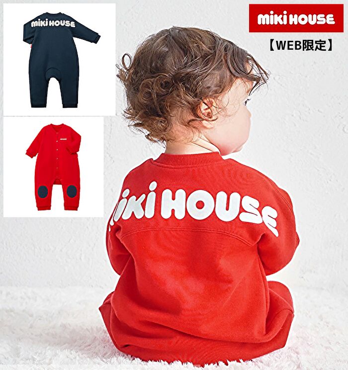 セール30%OFF!ミキハウス バックロゴ トレーナー 長袖カバーオール(70cm・80cm・90c・・・
