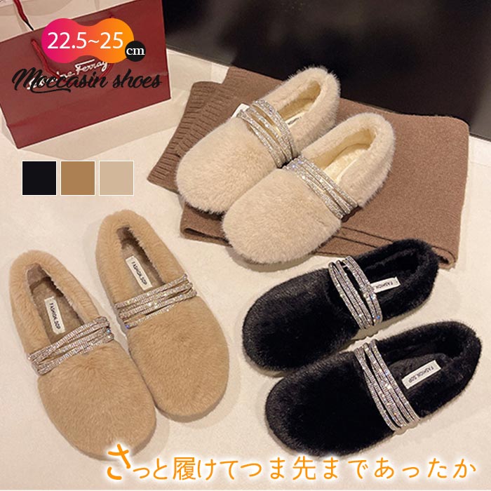 モカシン レディース 冬 フラット シューズ 暖かい ボアブーツ 裏起毛シューズ 歩きやすい ムート・・・