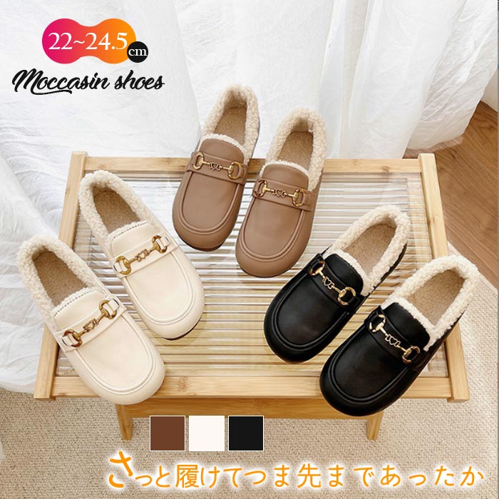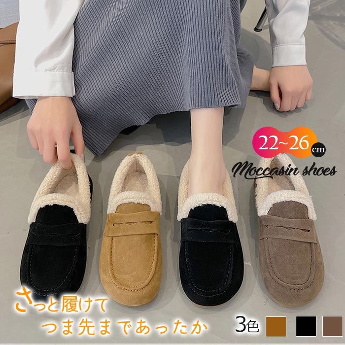 モカシン ブーツ レディース ボア モカシン モカシン ファー 裏起毛 ブーツ 冬 暖かい ボアブー・・・