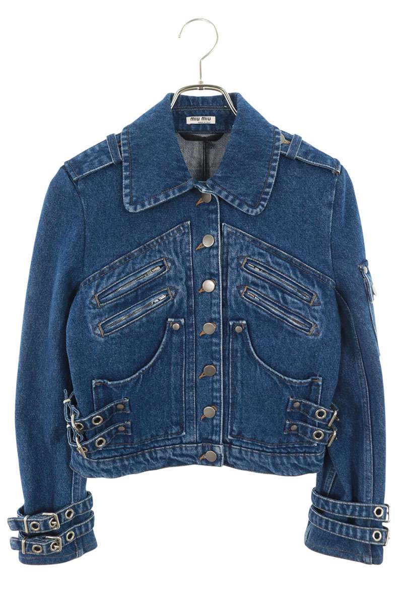 ミュウミュウ miumiu サイズ:36 GWB067 バックロゴクロップドデニムジャケット(ブルー・・・