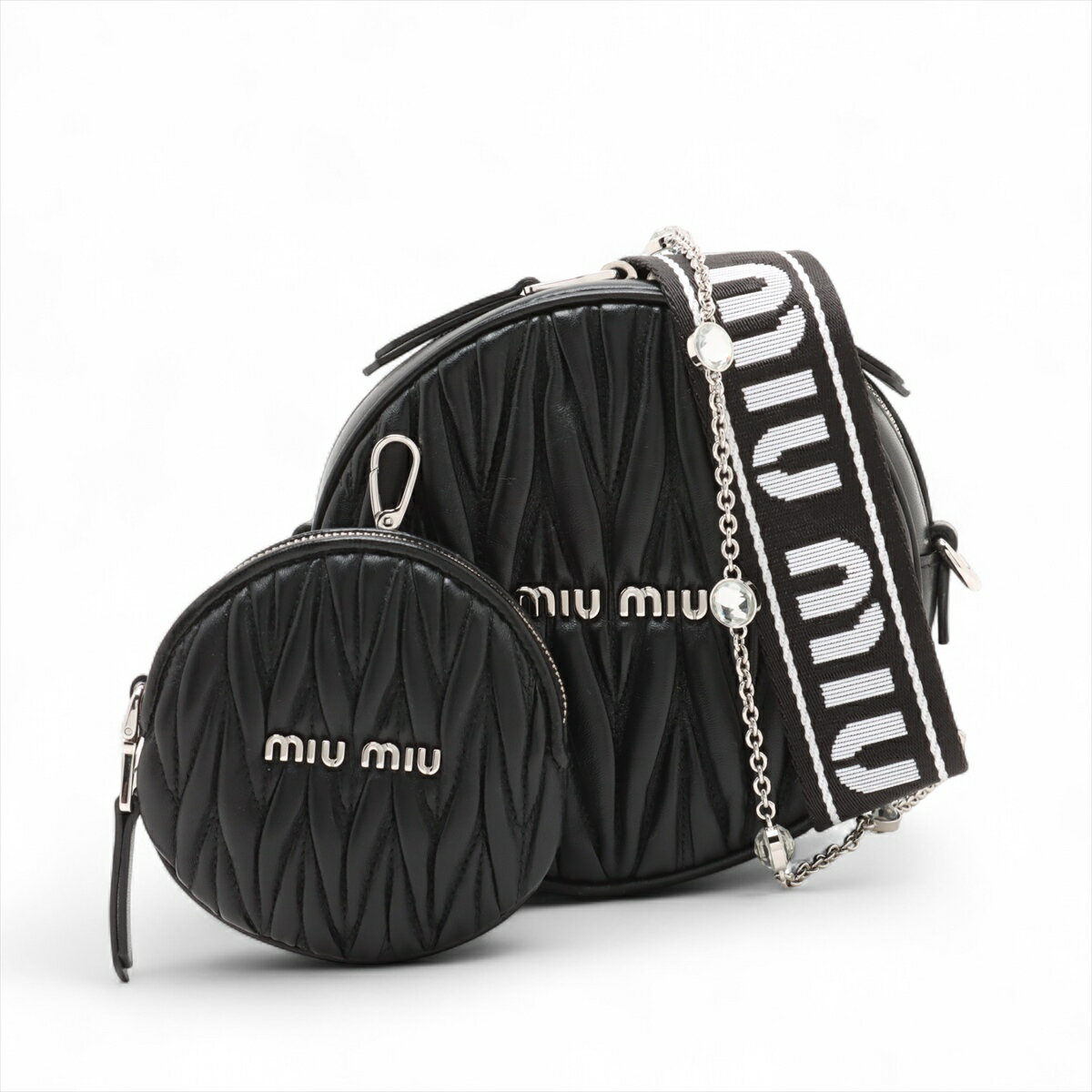 【中古】ミュウミュウ マテラッセ ナッパクリスタル レザー 2WAYショルダーバッグ ブラック 5B・・・