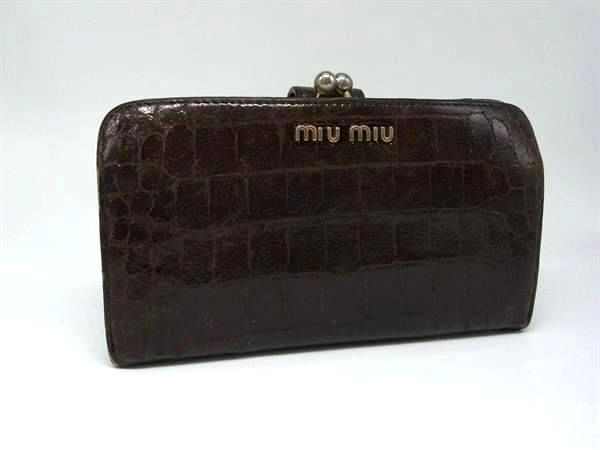 miumiu ミュウミュウ クロコダイル型押しレザー 二つ折り がま口 長財布 ウォレット 札入れ ・・・