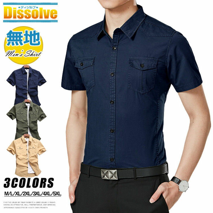 無地シャツ メンズ 半袖 シャツ カジュアルシャツ ミリタリーシャツ 無地 コットンシャツ スリムシ・・・