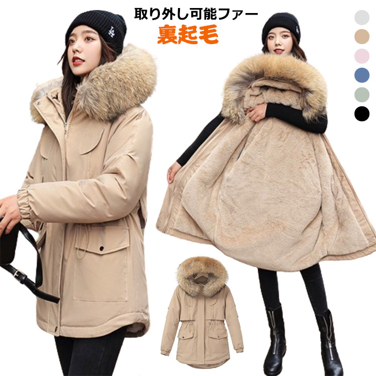 モッズコートレディース 裏ボア 裏起毛 ミリタリーコート ロングコート 長袖 フード付 ファー付き ・・・