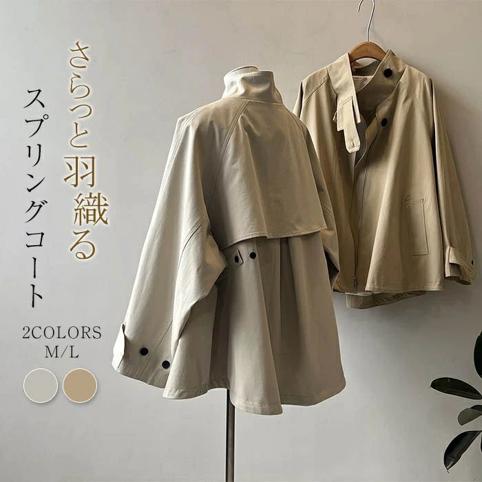 スプリングコート ポンチョ コート アウター レディース 春 秋 長袖 トレンチコート ジャケット ・・・