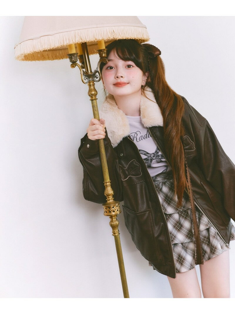 mezzo piano Junior リボンアップリケ合皮ジャケット(フェイクファー衿つき) ナルミ・・・